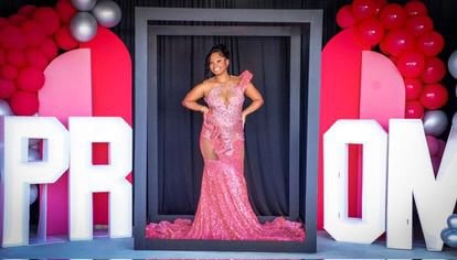 Command attention in this stunning blush pink sequin mermaid prom gown, designed for bold elegance and unforgettable entrances. Featuring a plunging illusion neckline with intricate lace appliqué detailing, this figure-contouring dress highlights the waist with a striking side cut-out design. The shimmering all-over sequin fabric cascades into a dramatic floor-length mermaid train, creating a glamorous red-carpet silhouette. Perfect for prom, formal events, galas, and pageants, this statement gown blends modern allure with timeless sophistication.